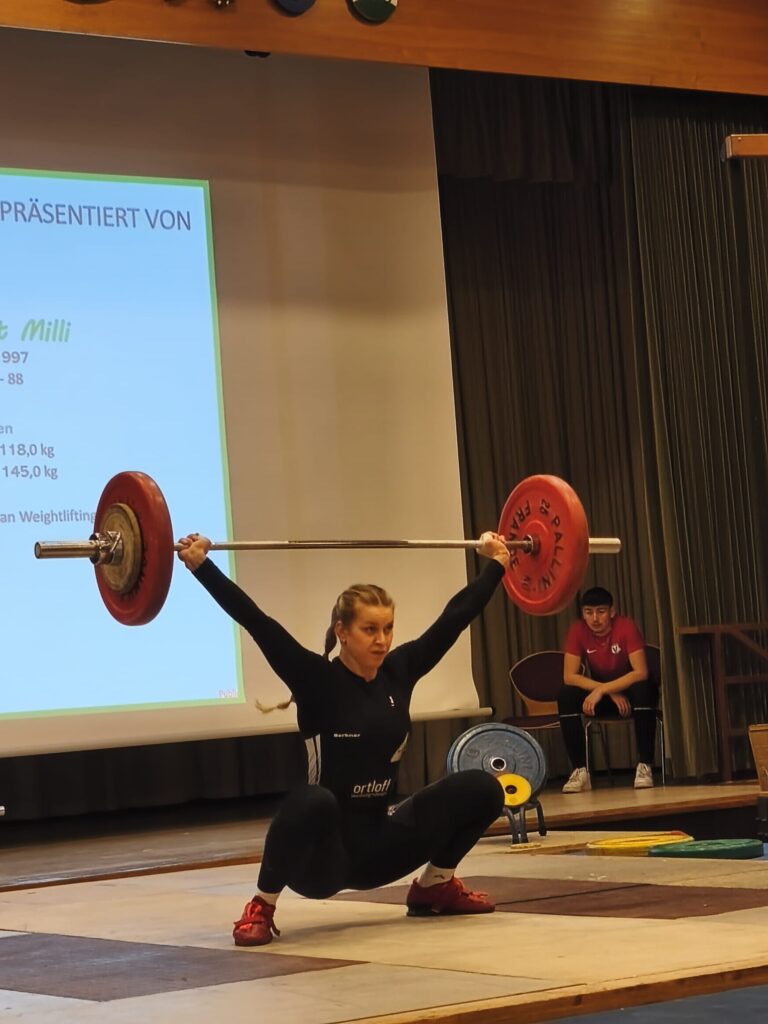 Franziska Erbert wollte dem in Nichts nachstehen und schaffte ebenfalls 3 gültige mit 85 kg im letzten. Trotzdem führte St Illgen mit 173,5 zu 152,5.